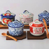 精彩绘与碗碟浑然天成,其个性化的图案耐磨不易褪色,花色丰富,造型新颖。 重量:2100g 商品尺寸:碗φ10×9.5cm 250cc 木台:11.5×11.5×1cm 汤匙:13×3.5cm