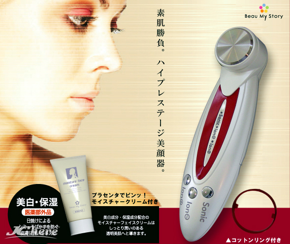 不要不敢相信,现在你在家里就也能享受日本美容沙龙的尊贵礼遇。这款超音波美容导入仪能达到每秒300万次惊人的按摩频率。同时还附带有效促进皮肤新城代谢的超声波功能。将美容液成分均匀有效地渗透至肌肤内部。离子导入功能可达到超强的深层去污。配合专用的胎盘精华乳液,是平日里不可或缺的美白营养护理。只要坚持长期使用,肌肤就能变得清透净白,白皙而富有弹性。