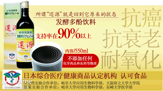 发酵多酚"还源"是日本综合医疗健康商品认定机构,认可食品!采取不添加任何时化学药品和农药等物质的栽培方法所培养出来的自然生长的菌丝,在生长成蘑菇之前的菌丝中直接抽取含有丰富的植物抗氧化成份,在其发酵过程中直接提取精华的制造方法。并对癌症患者、皮肤病患者以及因受压力大而引起的一些疾病,都有一定的疗效,并获得90%以上顾客的支持率!是一款值得依赖放心、安全使用的多酚饮料。